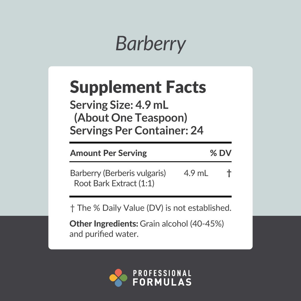- Barberry (Berberis vulgaris) Root Bark Extract (1:1) 4.9mL